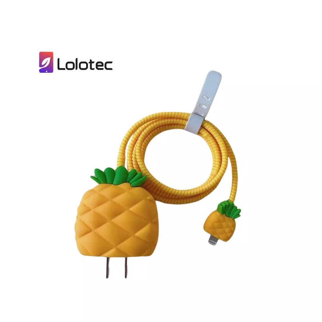 Kit protector de cable y cubo para iPhone (4 piezas) – Diseño Piña