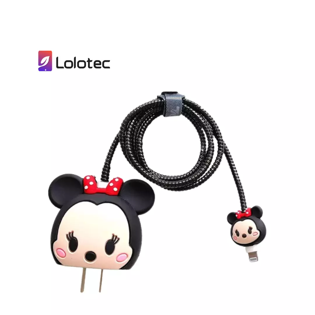 Kit protector de cable y cubo para iPhone (4 piezas) – Diseño Minnie Mouse