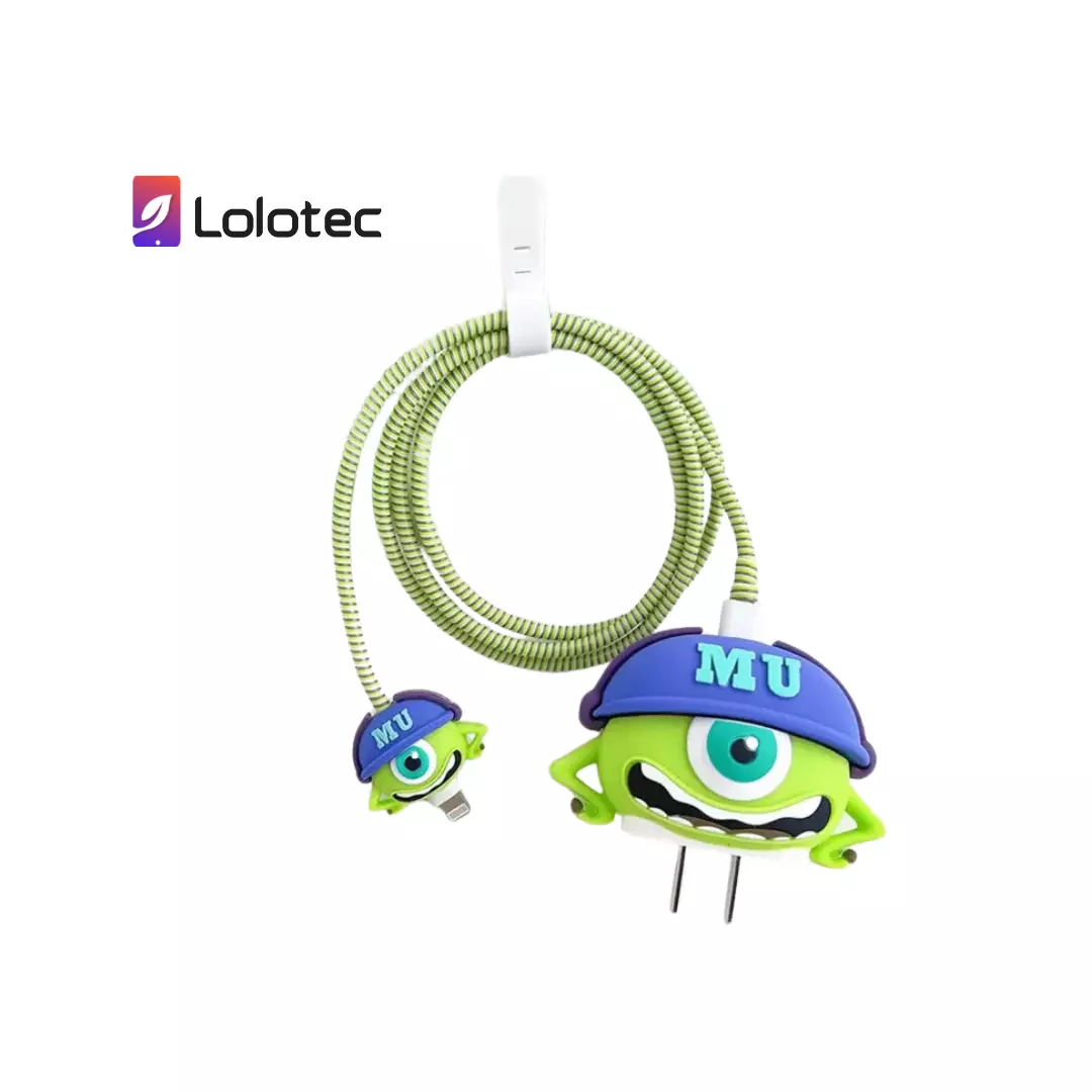 Kit protector de cable y cubo para iPhone (4 piezas) – Diseño Mike Wazowski