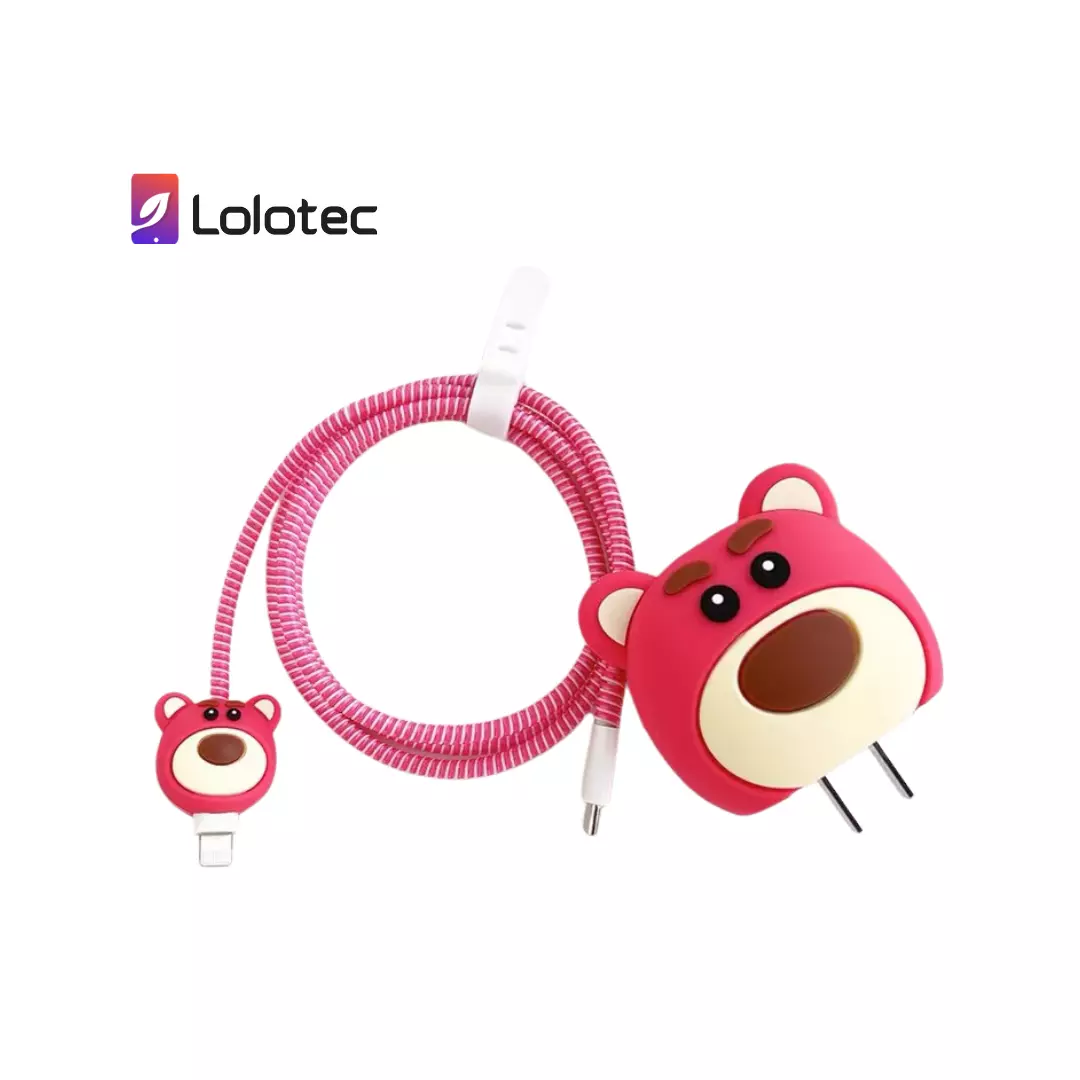 Kit protector de cable y cubo para iPhone (4 piezas) – Diseño Oso Lotso